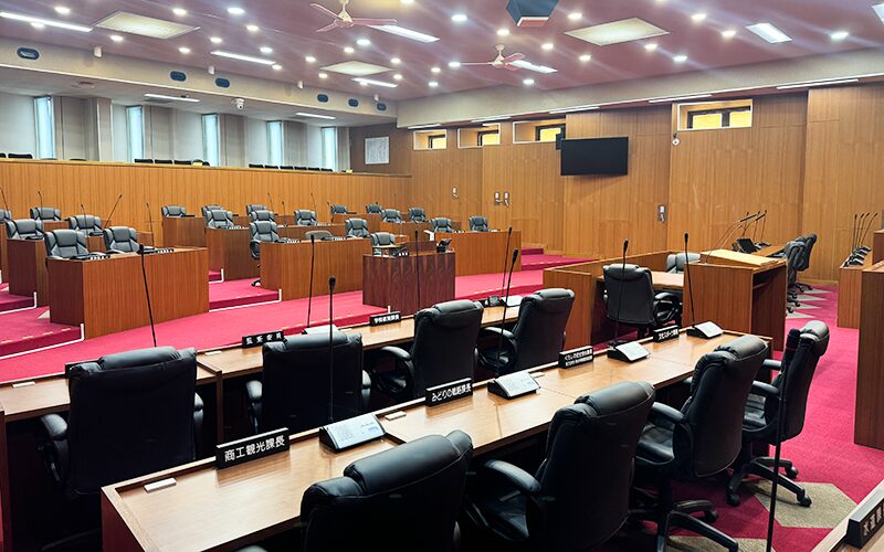 議場用放送・映像設備改修工事議場内の音声や映像をより鮮明に伝えられるよう、環境を整えました。 -